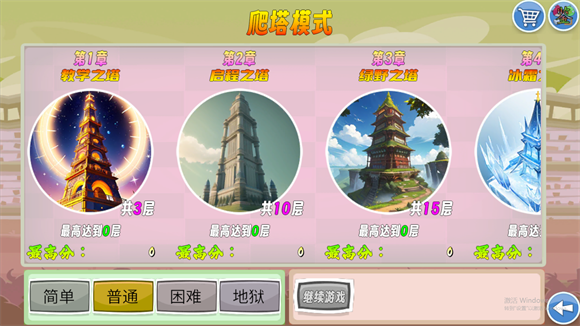 1、进入游戏后游戏为我们提供了两种模式可供选择,分别是爬塔模式和选关模式,这里我们以爬塔模式为例。