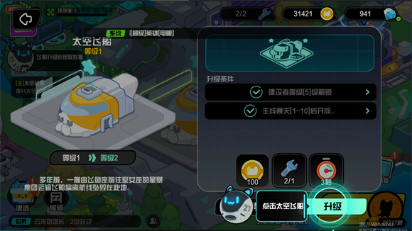 2、有足够的资源后可以对角色进行升级,提升角色的实力
