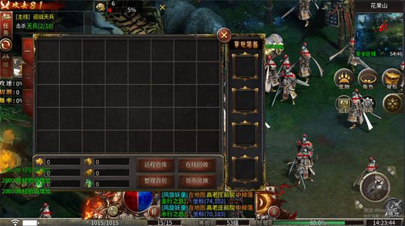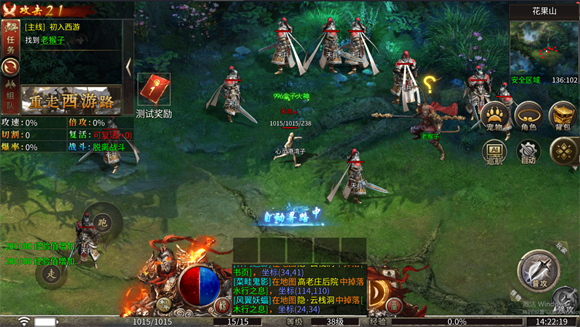 1、进入游戏完成花果山剧情,获得剧情装备、群攻宠物和特权奖励,群攻宠物远古瑞兽拥有泰山压顶技能
