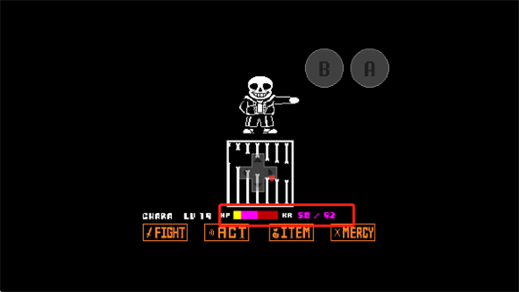 2、该模式为最为经典的剧情,游戏内玩家需要操控爱心躲避骨刺的攻击,但骨刺的移动速度较快,玩家触碰后会失去一部分的生命值