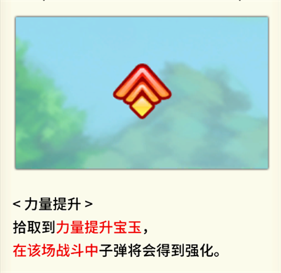 4、力量提升:拾取到力量提升宝玉,在该场战斗中子弹将会得到强化。