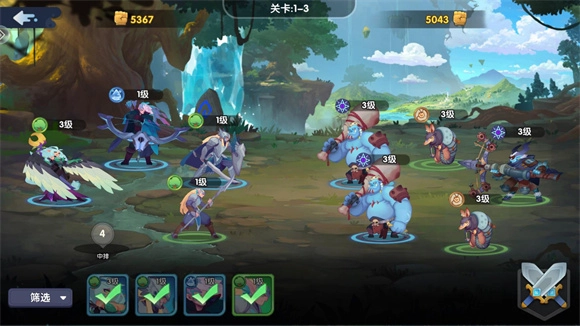 游戏内玩法丰富多元,巧妙融合了策略攻防(基于属性克制关系)、自动推关、地图探索、村庄派遣任务等多种模式,为玩家打造了充实的游戏体验。在美术风格上,游戏采用独特的欧美卡通画风,色彩明快且极具视觉张力,2D美术与角色设计都十分精致,每个英雄都洋溢着奇幻色彩。这些设计让玩家能收获多样化的游戏感受。尽管当前游戏在资源获取和推图难度方面存在一些挑战,但团队会持续积极更新与维护游戏,保障玩家的良好体验。