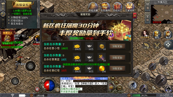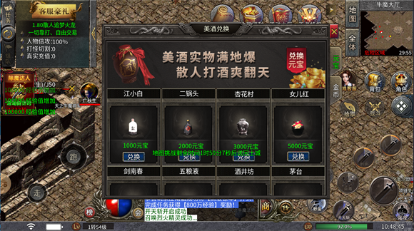 2、金币全靠打:游戏中的主要货币金币完全通过打怪获得,无法通过充值获得,确保了游戏的公平性。