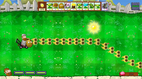 5、在前进的过程中,阳光会随机掉落,玩家拾取后可用于购买道具卡。