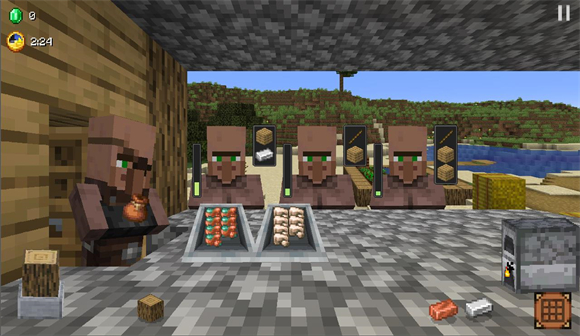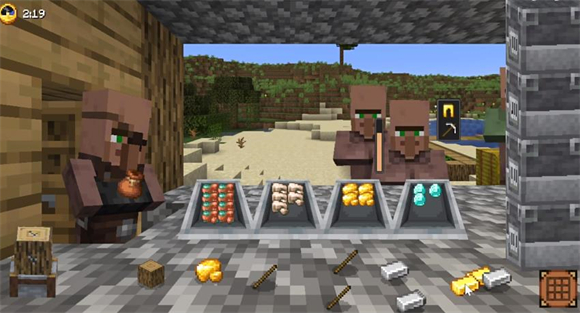 建议把矿车换成打开的箱子,直观而且看起来也符合游戏习惯。加入盾牌以及其他铜制品,越复杂的物品赚钱更多。加入燃料机制,熔炉会熄灭无法冶炼矿物,需要定期添加燃料,不同种的燃料效果不同,有的可冶炼数量更多,有的冶炼速度更快。不同职业的村民皮肤不同,需要的工具不同,如渔夫一般会需要桶,农夫需要锄头铲子。加入红石用以自动化,如漏斗自动取物,发射器加比较器自动补货,活塞自动交付,给村民食物可以降低等待。