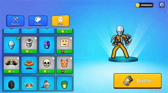 进入游戏后,你可以为自己的火柴人挑选武器装备,不同的装备会带来不一样的效果。