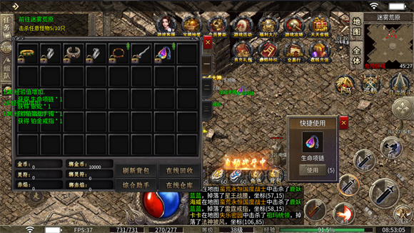1、这里所有装备和道具都是通过打怪掉落获取的,不存在那种需要付费才能得到的礼包