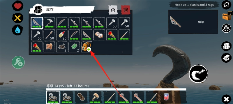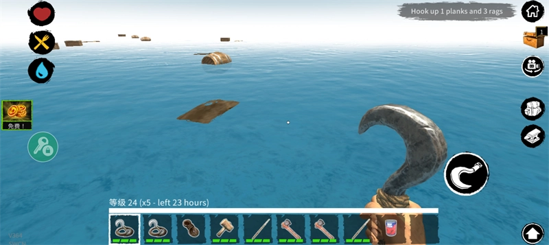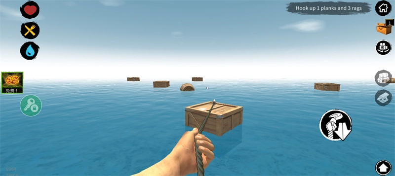 开局仅有一片小小的木筏和一只用于收集资源的钩子。在浩瀚无垠的海洋中,生存是唯一的目标。你需要用钩子打捞海上漂流的木板、塑料、树叶等材料,不断加固并扩大你的木筏,逐步将其从避难所建设成功能齐全的海上家园。