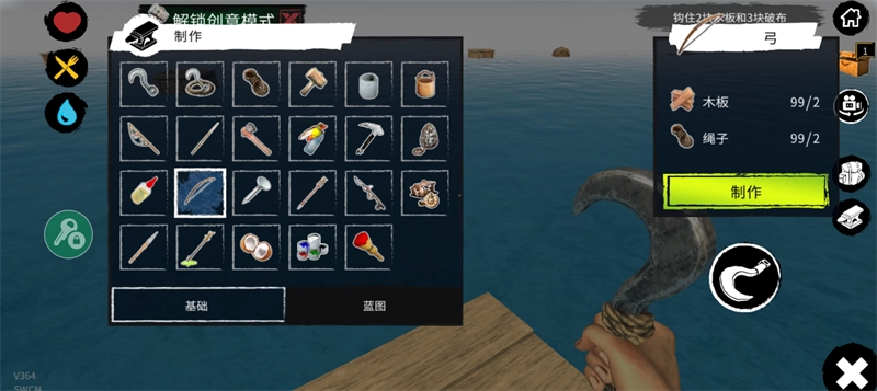 4、建立!将你的木筏从简单的残骸扩展到漂浮的豪宅。