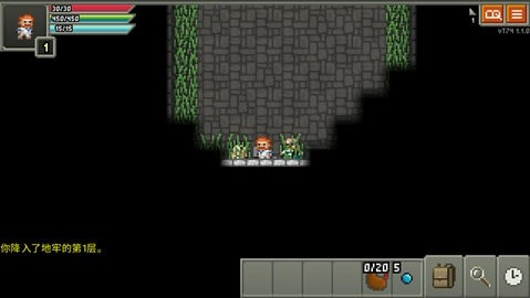 游戏的操作方式十分简易,玩家只需点击屏幕就能操控角色移动,点击眼前出现的敌人便会自动发起攻击,若遇到道具则会自动收入包裹。游戏界面左下角的按钮依次为“等待一回合”“搜寻周边区域”和“检查单个目标”,合理运用这些功能,就能在地牢里收获意想不到的惊喜。