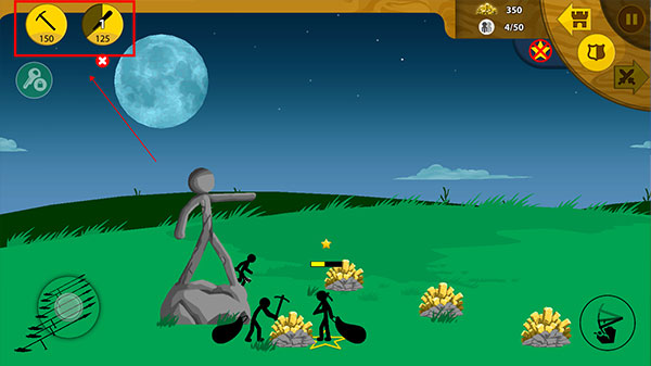游戏开始后,点击左上角的矿工图标,即可召唤矿工进行采矿。