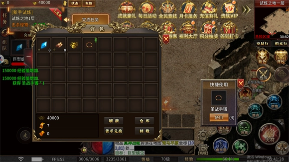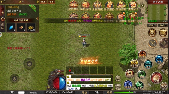2、新手刚上线就能获得自动回收、自动捡物、自动挂机和随身仓库,超大仓库直接全开,打怪时还能自动施加绿毒,同时拥有逐日剑法、开天斩技能,以及大陆传送功能,建议跟随主线任务推进。