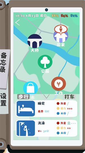 3、日常决策:玩家需要对每日行程进行合理规划,兼顾工作、休息与避暑事宜,以此保障自身的生存状态。
