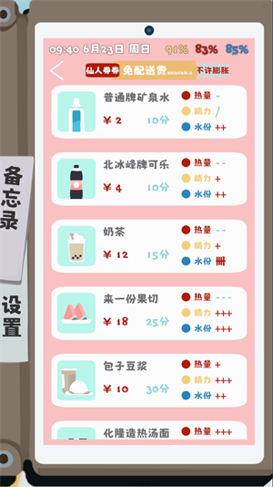 在《夏日生存指南》这款游戏里,玩家的核心目标是撑过酷热难耐的夏天,直到攒足资金购入空调,从而摆脱高温带来的种种不适。游戏借助对现实生活挑战的模拟,来检验玩家的资源调配与决策判断能力。玩家得时刻留意角色的身体状态,像脱水程度和精力值这些指标都不能忽视,不然很可能会因高温而晕厥。为了维持良好状态,玩家或许要通过外卖应用下单食物和饮品来恢复体力。此外,游戏里的经济压力也是关键一环,玩家需要借助地图应用寻找夜市摆摊或者打工的机会,以此获取收入。