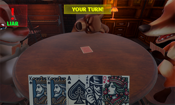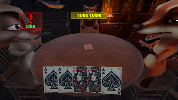 2、说谎机制:在每一轮出牌的环节中,玩家有权决定是否对自己所出牌的数值进行虚假陈述,这一机制既考验玩家自身的说谎技巧,也要求玩家具备判断对手是否在说谎的能力。