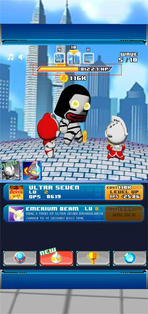 1、的每个奥特曼都有自己的技能,不同的技能带来不同的技能,并且都有斩杀的意义。