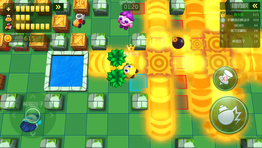 玩家操控角色移动并使用道具,能够破坏箱子和战胜其他玩家。