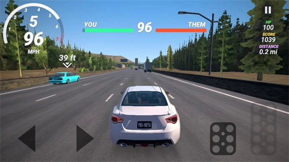 7、我们能够借助左下方的方向键来操控车辆的行驶方向,而右侧的刹车键与油门键则用于控制车辆的行驶速度。