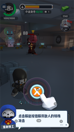 7、遭遇火力强劲的敌人时,需点击躲避按钮才能避开其特殊攻击