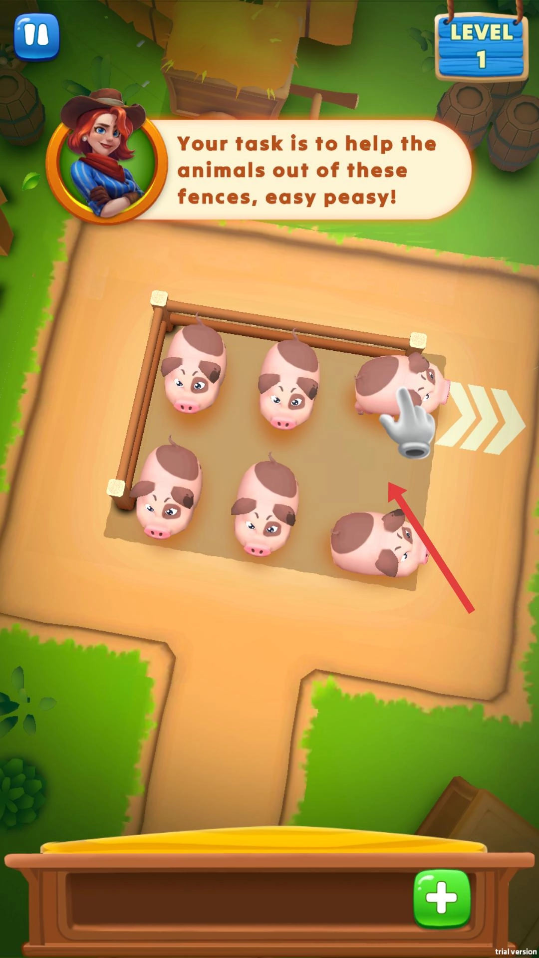 你可以通过滑动等操作,引导围栏内的动物朝着出口方向移动;在移动过程中,得留意避开围栏的阻挡,帮助动物顺利朝着出口行进。