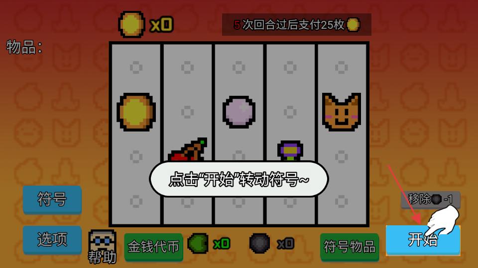 在符号界面,按照提示点击开始按钮后转动符号,使不同符号在格子里显示出来,以此推动回合进度。