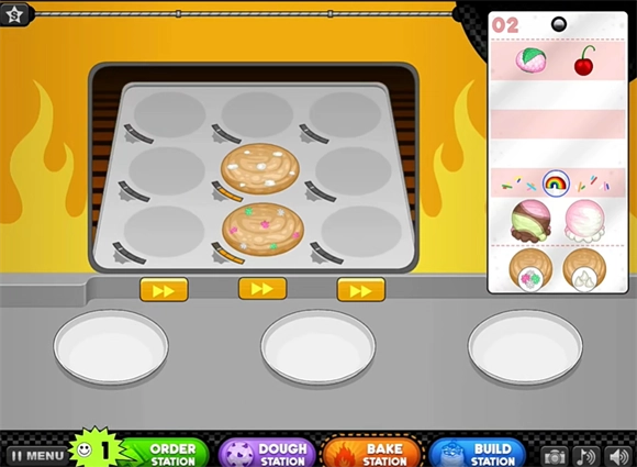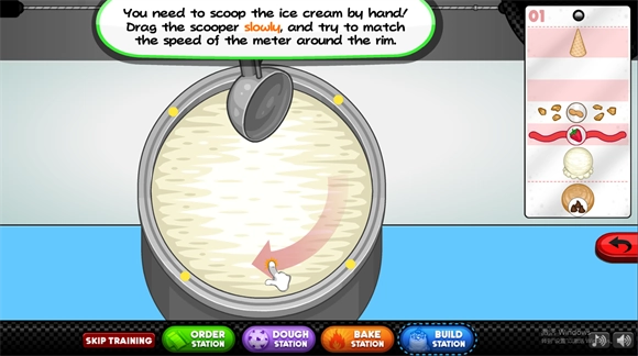 1、冰淇淋制作环节:玩家需烘烤新鲜饼干,制作可口圣代,同时为顾客提供各类浇头与糖浆。