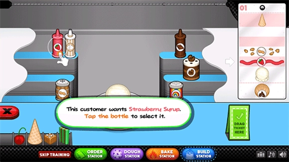 6、添加糖浆:若顾客选择草莓糖浆,点击对应的瓶子即可完成选择。