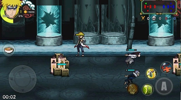 火影战记联机版的操作方式较为简易,玩家可挑选一名角色,与两名由电脑操控的角色组队协作,或者和好友通过局域网联机共同对抗电脑;在游戏过程中,玩家需运用角色的技能与各类道具来击败敌方的3名角色,并且只要成功摧毁对方的三座塔,就能赢得这场游戏的胜利。