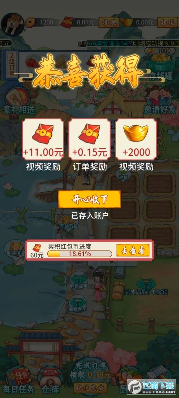 吉祥农庄红包版是一款模拟经营类赚钱小游戏。在这里,你可以种种菜、钓钓鱼,享受休闲惬意的农场生活;种植各类蔬菜水果,解锁不同鱼类图鉴,完成订单就能领取红包奖励,种得越多,奖励越丰厚。感兴趣的小伙伴们,快来体验这款游戏吧!