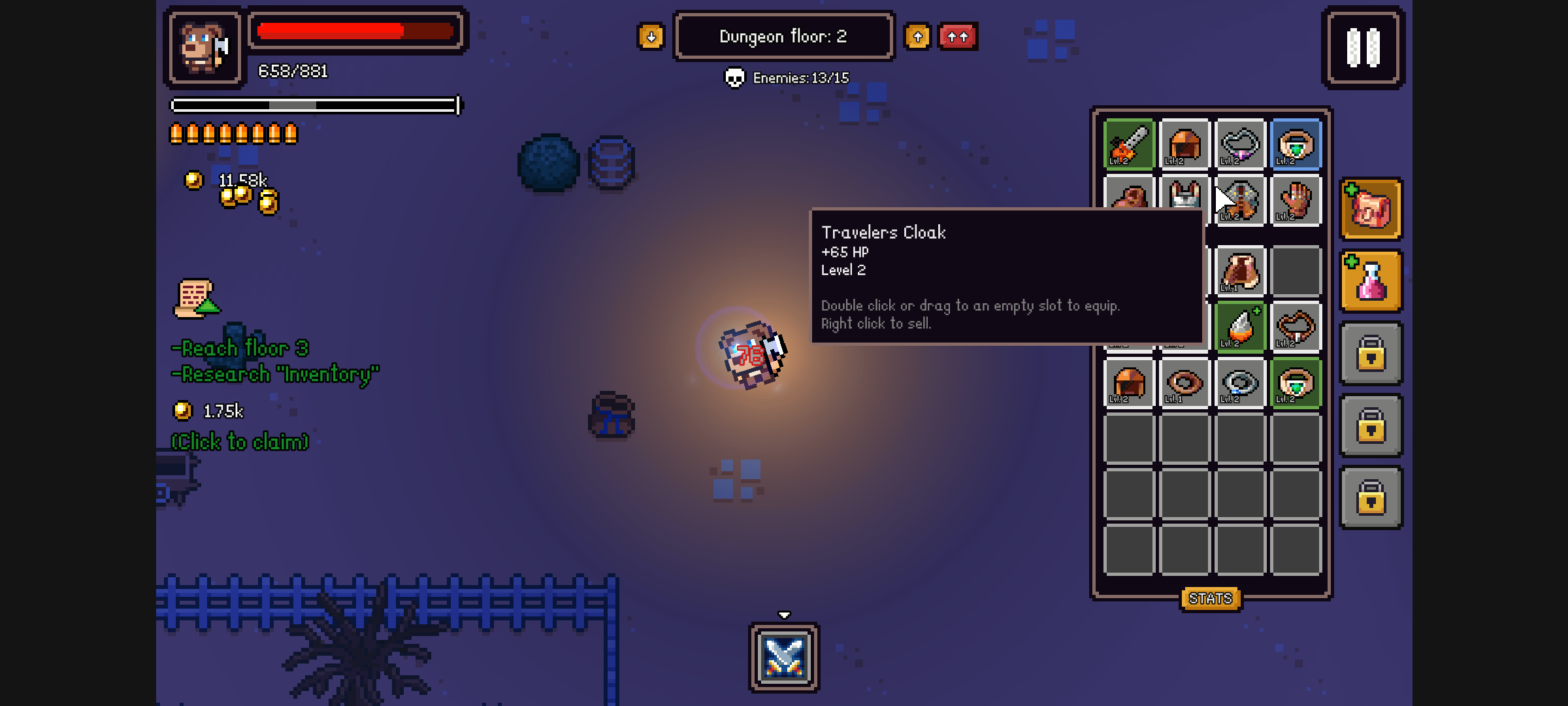 4、自由探索地牢的场景,多种随机事件不断出现。