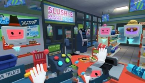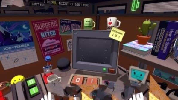 《工作模拟(Job Simulator)》是由开发商Owlchemy Labs制作的虚拟现实游戏,这款游戏可支持Oculus Rift和HTC Vive头盔设备。它的玩法和《外科模拟》颇为相像,玩家通过“笨拙”地与游戏内物体进行互动,来体会那些琐碎任务中蕴含的乐趣与挑战。