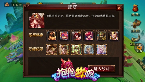 有道是:神塔纵高,亦非不可攀;塔之高低无关紧要,有奖励便值得一试。《抱抱兽娘》的爬塔玩法,难度上比普通副本要高一些,可给出的奖励却是普通副本远远比不上的。层数越高,对玩家的挑战自然越大,但越是遇到挫折,越容易激发大家的征服欲望——身为英雄,怎能轻易说自己不行!