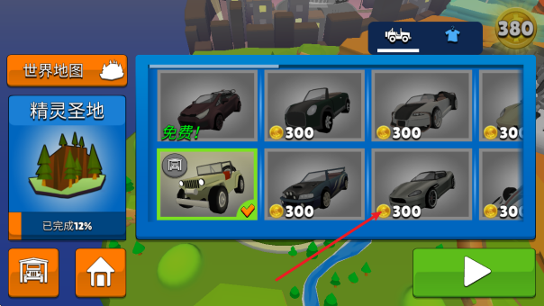 1、进入商店后,我们消耗金币即可解锁对应的汽车。