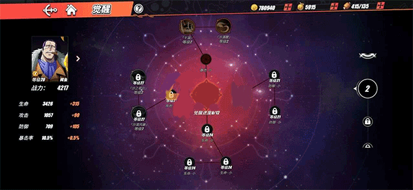 觉醒玩法能够提升玩家的基础属性,并且觉醒解锁的格子数量越多,所带来的属性加成也就越高。在游戏里,玩家的基础技能依靠觉醒玩法来升级,满级技能与1级技能尽管效果相同,然而伤害却存在40%的差距。