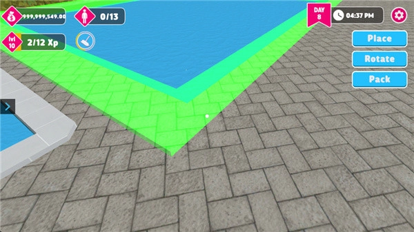 3、玩家可以亲手设计刺激的水滑梯、独特的泳池、主题景点等,利用模块化组件自由拼接,打造独一无二的水上乐园。