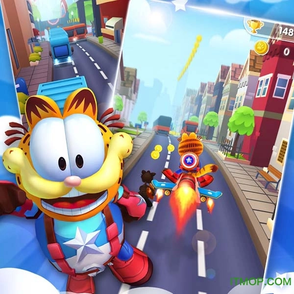 游戏类型。快来与加菲猫一起奔跑吧!