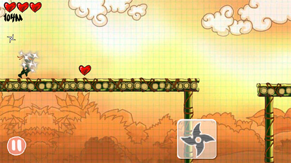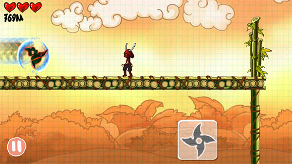 2、游戏操作特别简单,点击屏幕就能控制忍者跳跃、发镖,双击还能实现二段跳。
