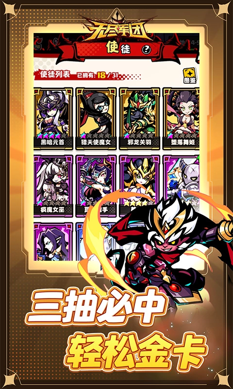 【三抽必出金卡,速度超快】 登录就能领取百连抽,全套阵容的使徒都免费赠送!不用再担心氪金像无底洞,只要抽三次就肯定能拿到金卡。无论是高冷的祭司,还是性感的魅魔,成熟的魔王,我们全都想要!