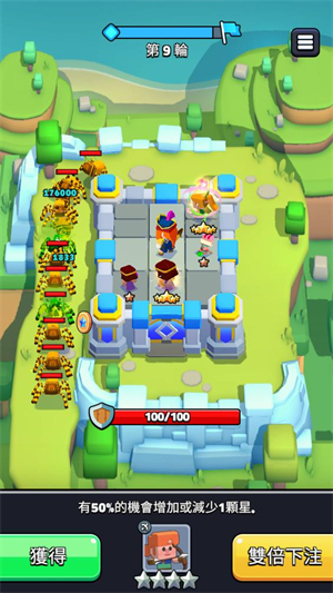 3、初始召唤出的小兵是2星,点击双倍下注后,有50%的概率让小兵的星级提升或降低一颗;小兵星级最高可提升至五星,若出现星级降低的情况,则会直接完成召唤。