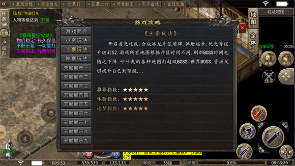 3、神豪玩法指南:完成首次充值,合成斗笠与盾牌装备,使用全区秒聚灵珠快速提升等级至52级。在江山如画地图中,所有BOSS必定掉落冰龙、完美、星空系列装备,待自身套装集齐后,优先强化辅助账号。占据岛屿即可坐拥丰厚资源,合区时优先争夺跨服沙城,获取大量绝版装备评分材料及顶级武器与衣服。