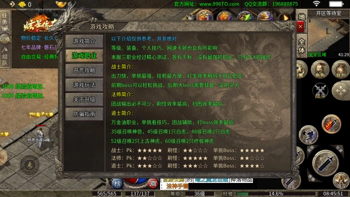 出刀速度快,单挑能力最强,挂机操作最方便,打宝效率比其他职业稍微弱一些,前期的boss能够轻松挑战,后期的大boss则需要具备一定的实力才能应对。
