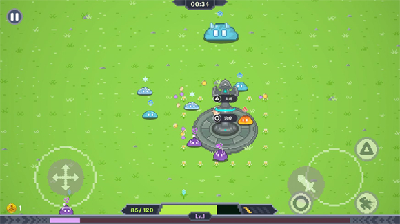 1、进入游戏后左边摇杆控制移动,右边控制攻击,圆圈和三角按钮分别对应不同的功能,攻击按钮右下角的是冲刺。
