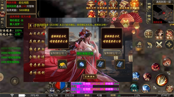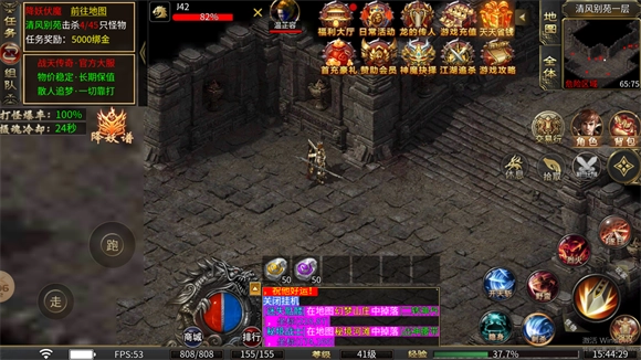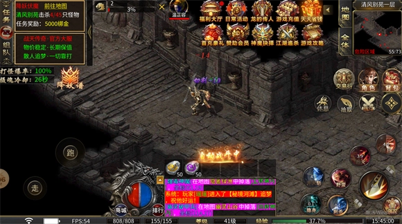 2、超大生态与自由转区:游戏设计了广阔的生态环境,允许玩家自由转区,享受特色战士流星火雨群怪技能。