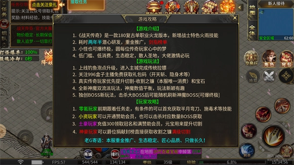 3、公平公正的游戏环境:山狮战天传奇注重游戏的公平性,材料装备保值,为散人玩家提供了稳定的搬砖机会。