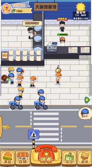 3、若想更出色地经营店铺,可招募合适的员工并升级配送方式。点击员工按钮即可打开员工界面。