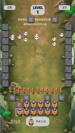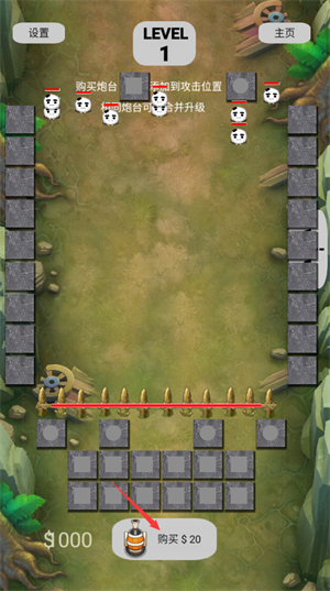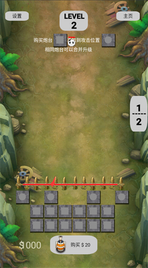2、玩家购买大炮之后需把它放置在前面进行部署