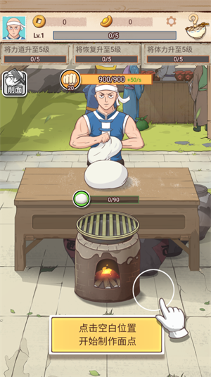 5、升级体力可以让制作更持久,升级恢复可以更快的恢复做面时消耗的体力,升级力道可以更快的做出面点