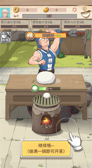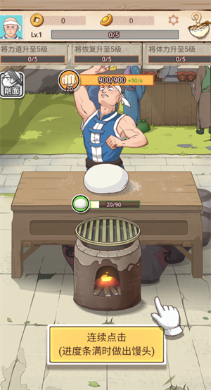 2、连续点击屏幕,在进度条满的时候即可制作馒头