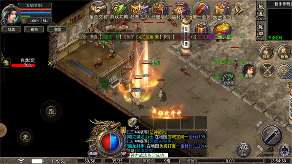 3、法师与战士组合释放合击技能时,威力提升至1.4倍,该合击技能名为雷霆一击。