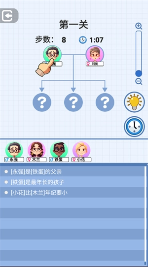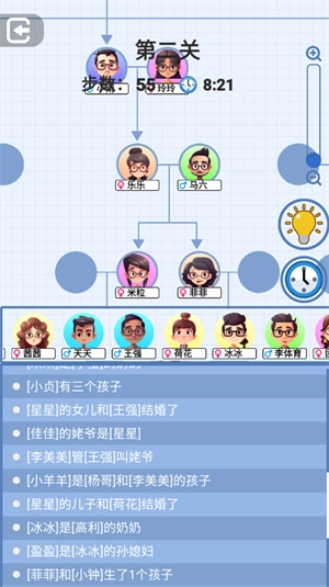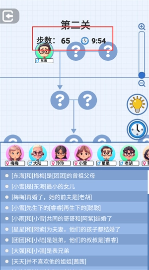 1、每一个关卡都会提供相应线索,玩家需依据这些线索推断出人物之间的关系